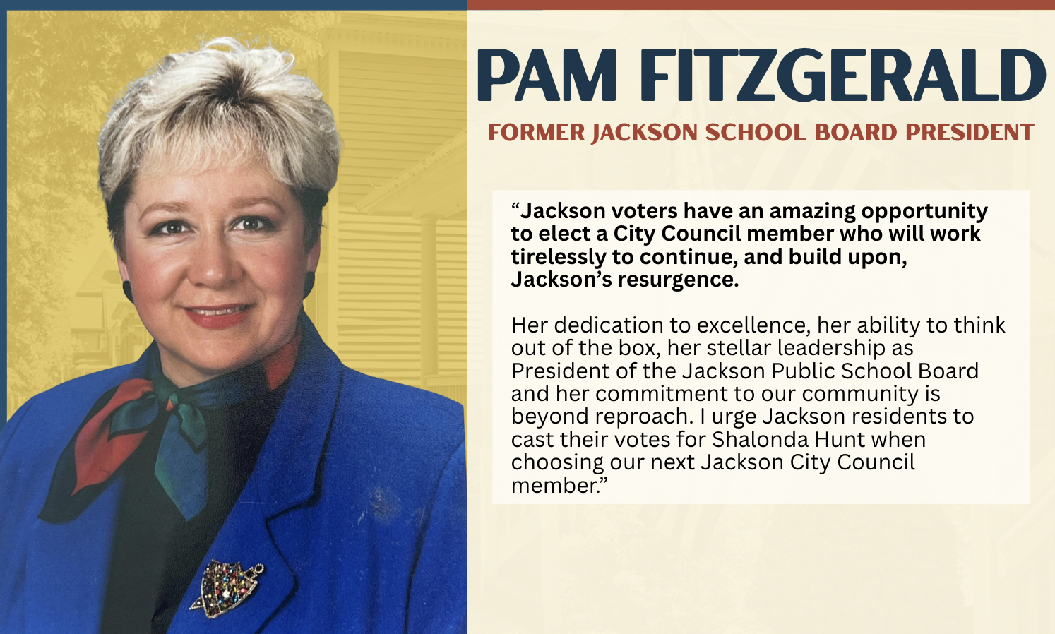I’m Shalanda Hunt, and I’m running for Jackson City Council – Ward 5 because our community deserves safe neighborhoods, affordable housing, strong public safety, and real economic opportunity. These are the foundations of a thriving Jackson, and I’m ready to fight for them on your behalf.